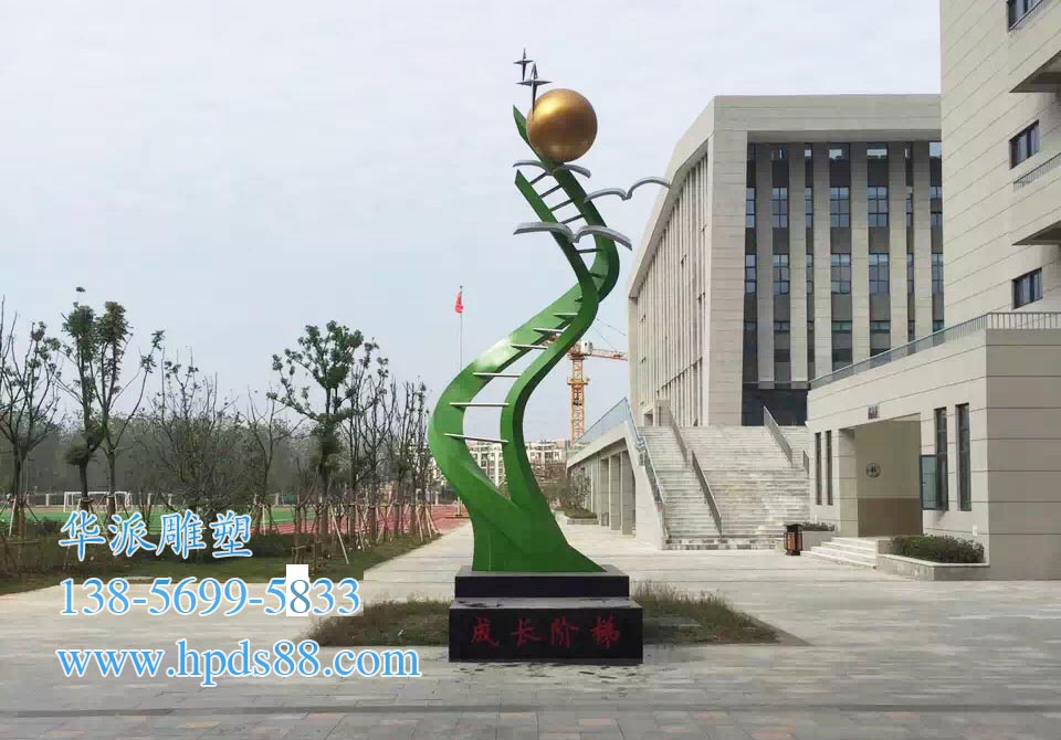 合肥市第四十五中学宝翠园校区主题雕塑由安徽省华派雕塑艺术公司设计、制作,现已施工安装完毕。该雕塑为一个抽象的螺旋楼梯、象征莘莘学子在求学的道路上一步一个脚印、走向美好的明天。